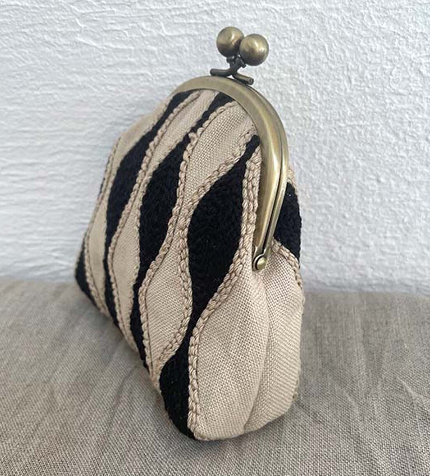 黒と生成のコントラストが美しい静かな気配をまとったアートポーチです。
